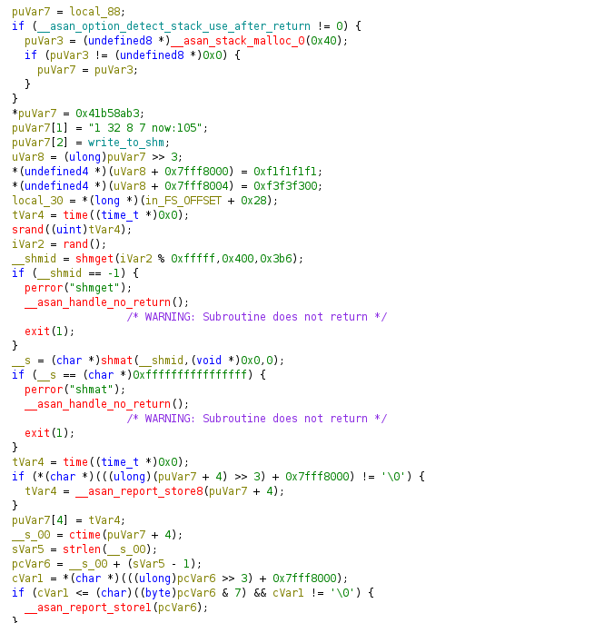 - The root helper creates a SysV shared memory segment, prints its key, sleeps 1 second, then reads that segment and shells out to mysql with the SHM contents embedded in the -e ‘…’ argument.