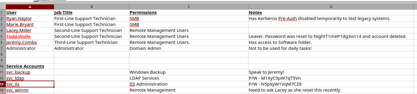 ryan.naylor:HollowOct31Nytto access SMB shares - Lateral Movement: Cracked password-protected Excel file to discover service account credentials