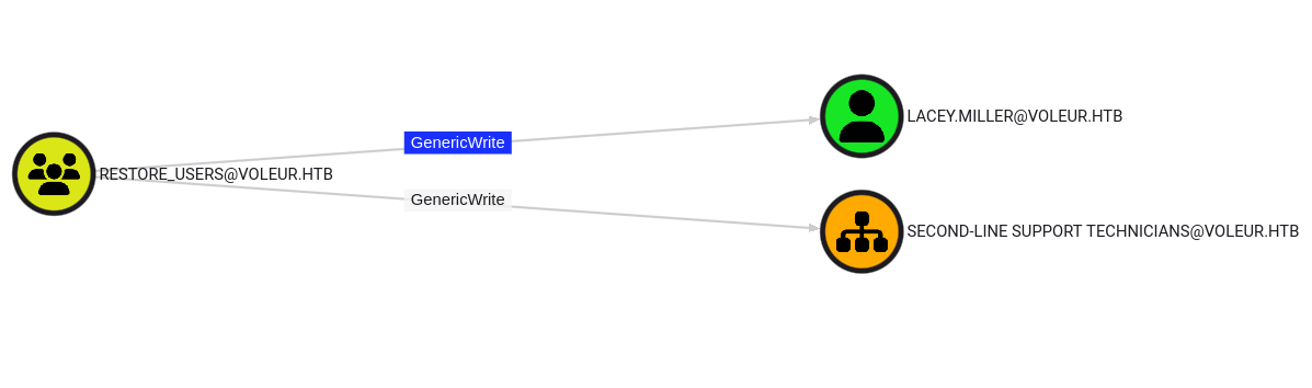 - RESTORE_USERS group with excessive GenericWrite privileges